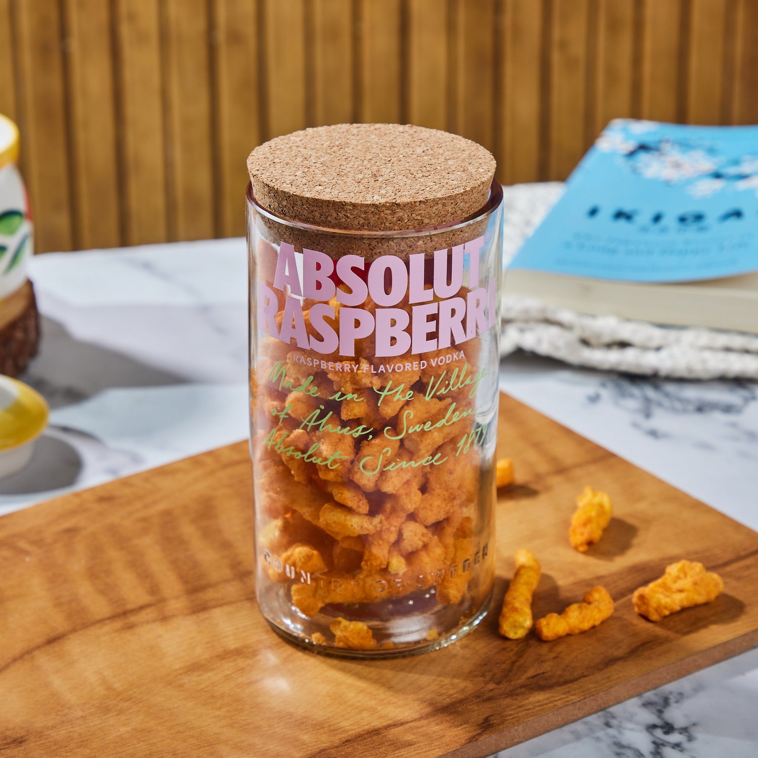 Infuse your home with a bold raspberry hue and a bold commitment to sustainability. The Absolut Raspberri Jar is handcrafted from an original Absolut bottle and designed to organize your space, the eco-friendly way.