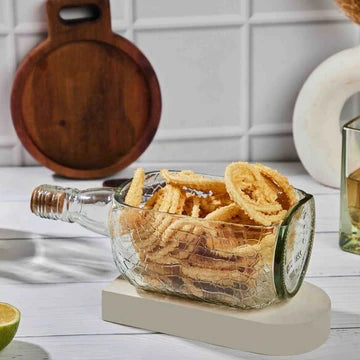 Add character to your table with the Old Monk Classic Platter from The Bottle Art. Upcycled from the iconic Old Monk glass bottle, this handcrafted serving platter blends timeless charm with sustainable living.